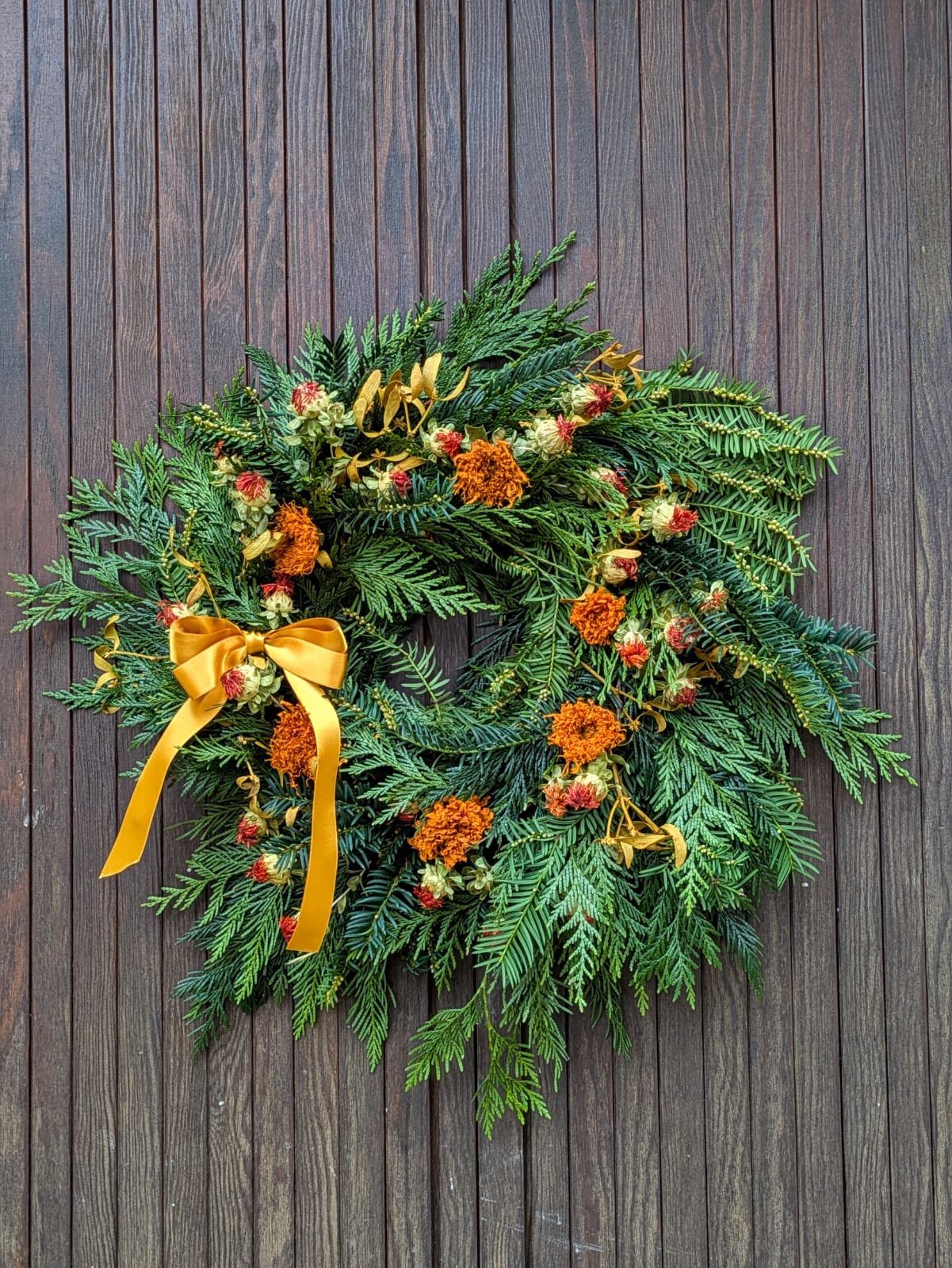 Couronne à accrocher à votre porte ou à offrir pour embellir la table de Noël.