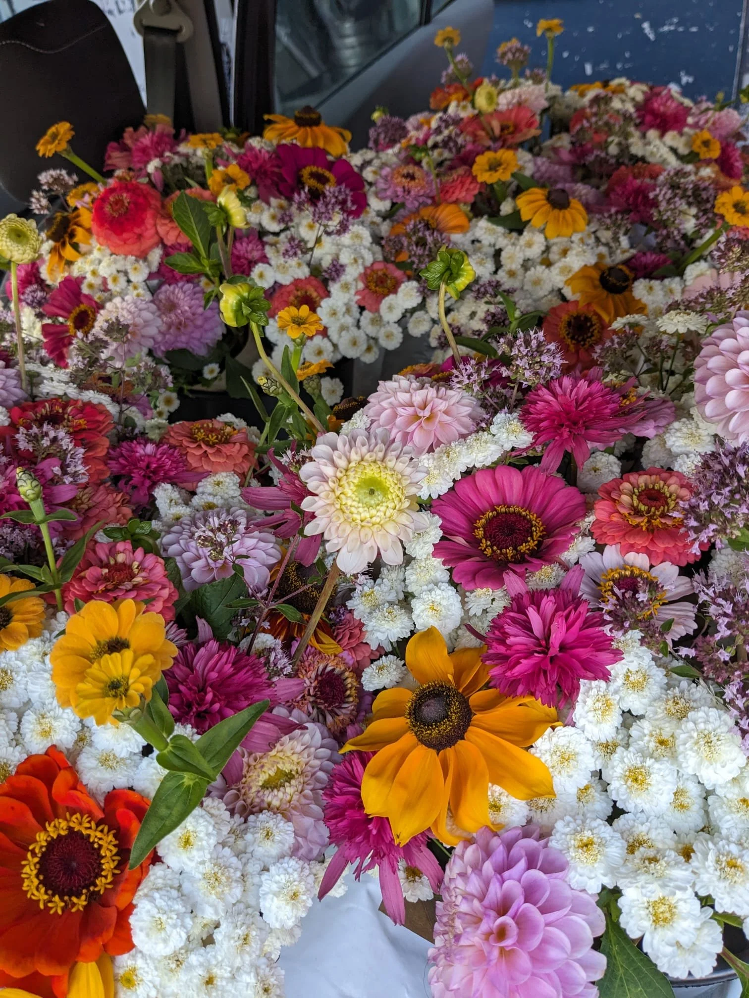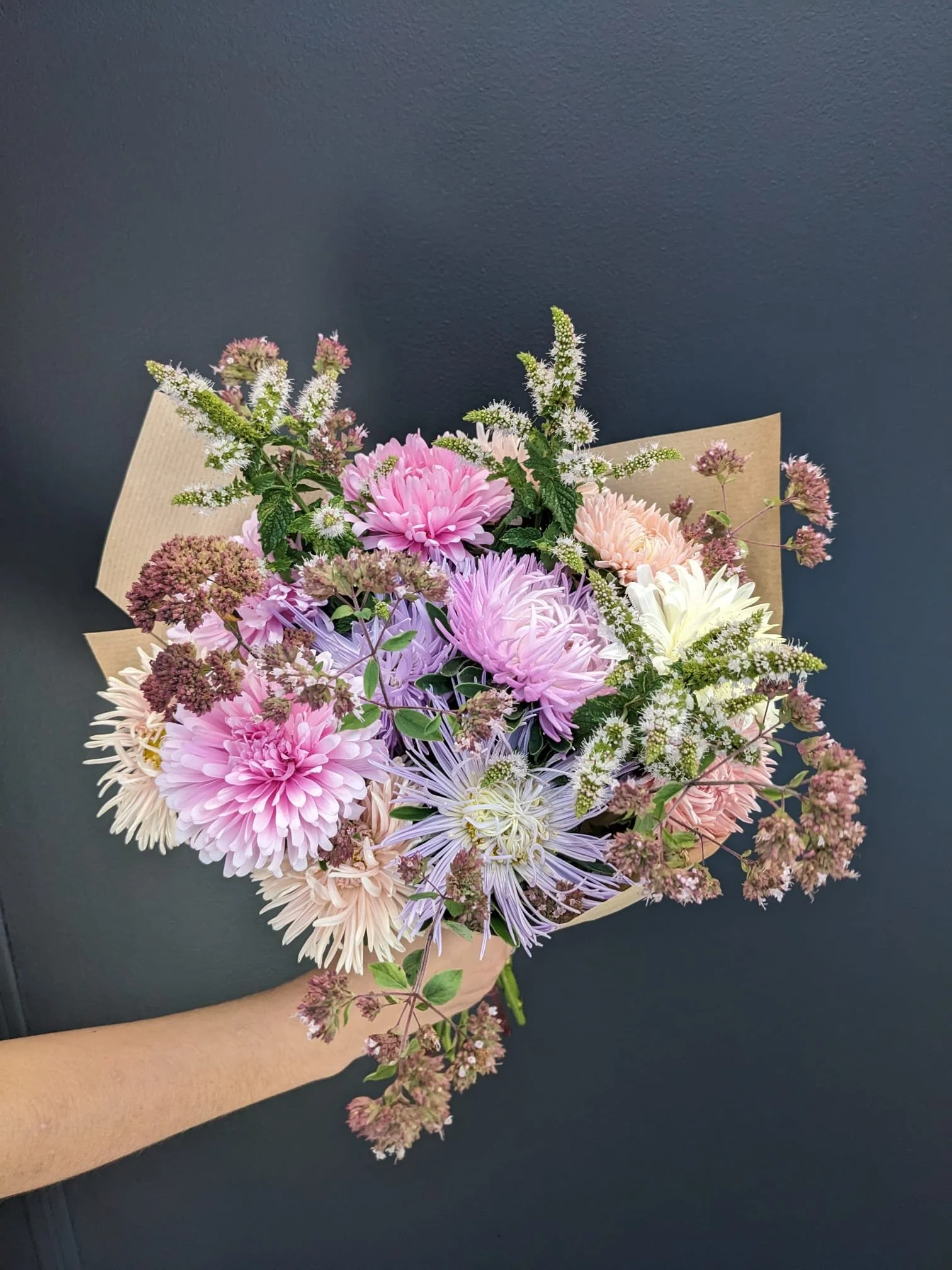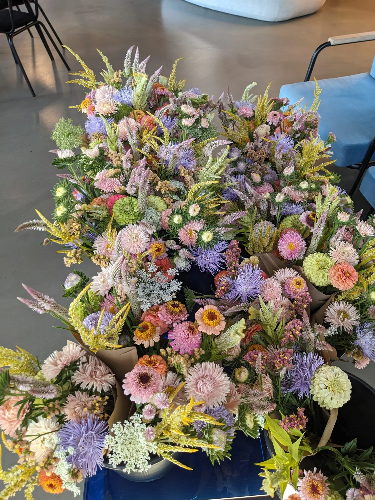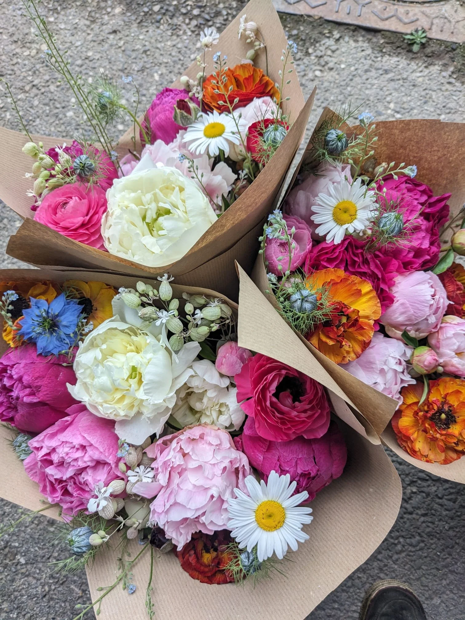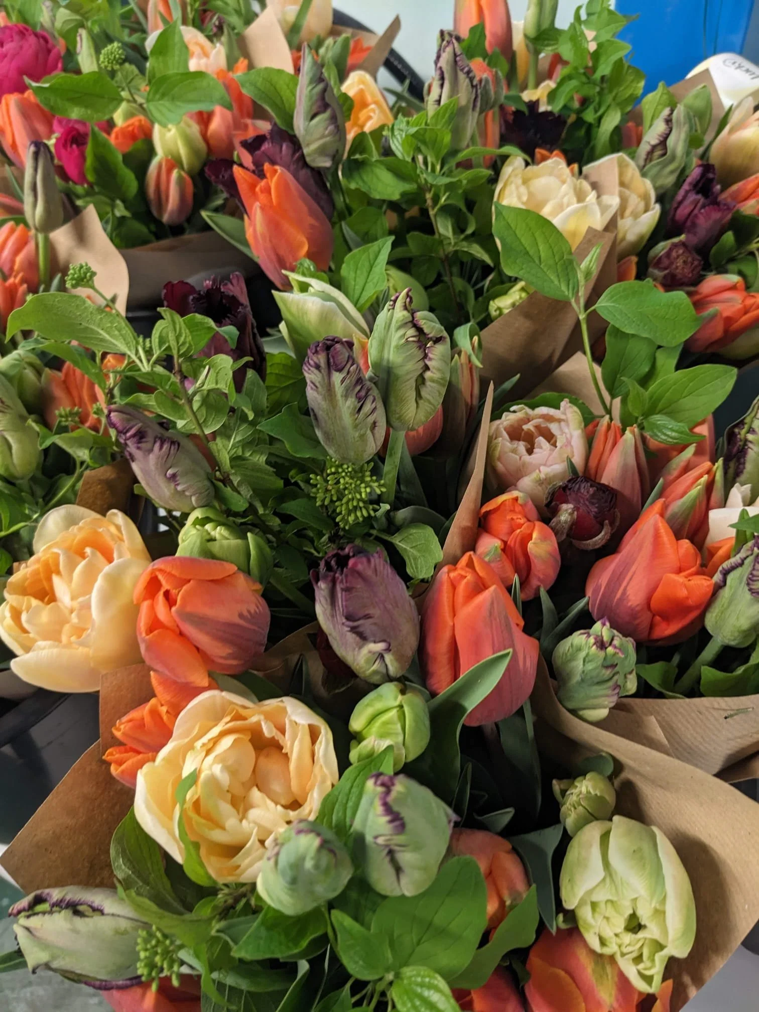 Chez Lucky une cinquantaine de variétés sont cultivées sur la saison. Les formes et couleurs évolueront selon les saisons. Voici une sélection des fleurs à retrouver dans vos bouquets au fil des mois : Tulipes, narcisses, iris, renoncules, anémones, mufliers, giroflée, lisianthus, cynoglossum, zinnias, cosmos, dahlias, aster.